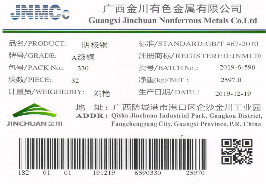 11月11日,上海期貨交易所(下稱上期所)子公司上海國(guó)際能源交易中心(下稱上期能源)發(fā)布了國(guó)際銅期貨合約及相關(guān)規(guī)則,根據(jù)《上海國(guó)際能源交易中心交割細(xì)則》《上海國(guó)際能源交易中心陰極銅期貨合約》和《國(guó)際銅交割商品注冊(cè)管理規(guī)定》等有關(guān)規(guī)定,金川銅【品牌:JNMC-A級(jí)銅(傳統(tǒng)電解),規(guī)格:1030*1000*15】和廣西銅【品牌:JNMC(防城港/永久陰極-K)A級(jí)銅(永久陰極-K),規(guī)格:1030*1010*10】成為首批國(guó)際銅期貨可交割品牌,更好的增加了金川集團(tuán)銅產(chǎn)品的貿(mào)易渠道及轉(zhuǎn)口業(yè)務(wù)、進(jìn)口業(yè)務(wù)的便利性和安全性。